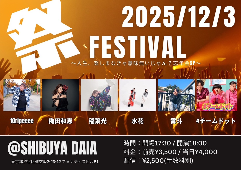 料金: 前¥3,500(1D別)/当日¥4,000(1D別)/配信¥2,500(手数料別)